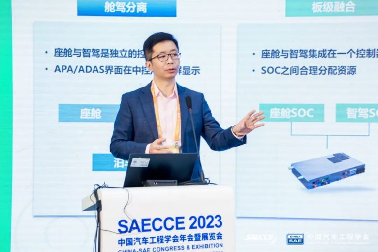 黃勝圍繞汽車智能座艙發展與演進、國產化智能座艙的落地實踐、艙駕融合構想以及新產品的技術路線等方面展開論述。
